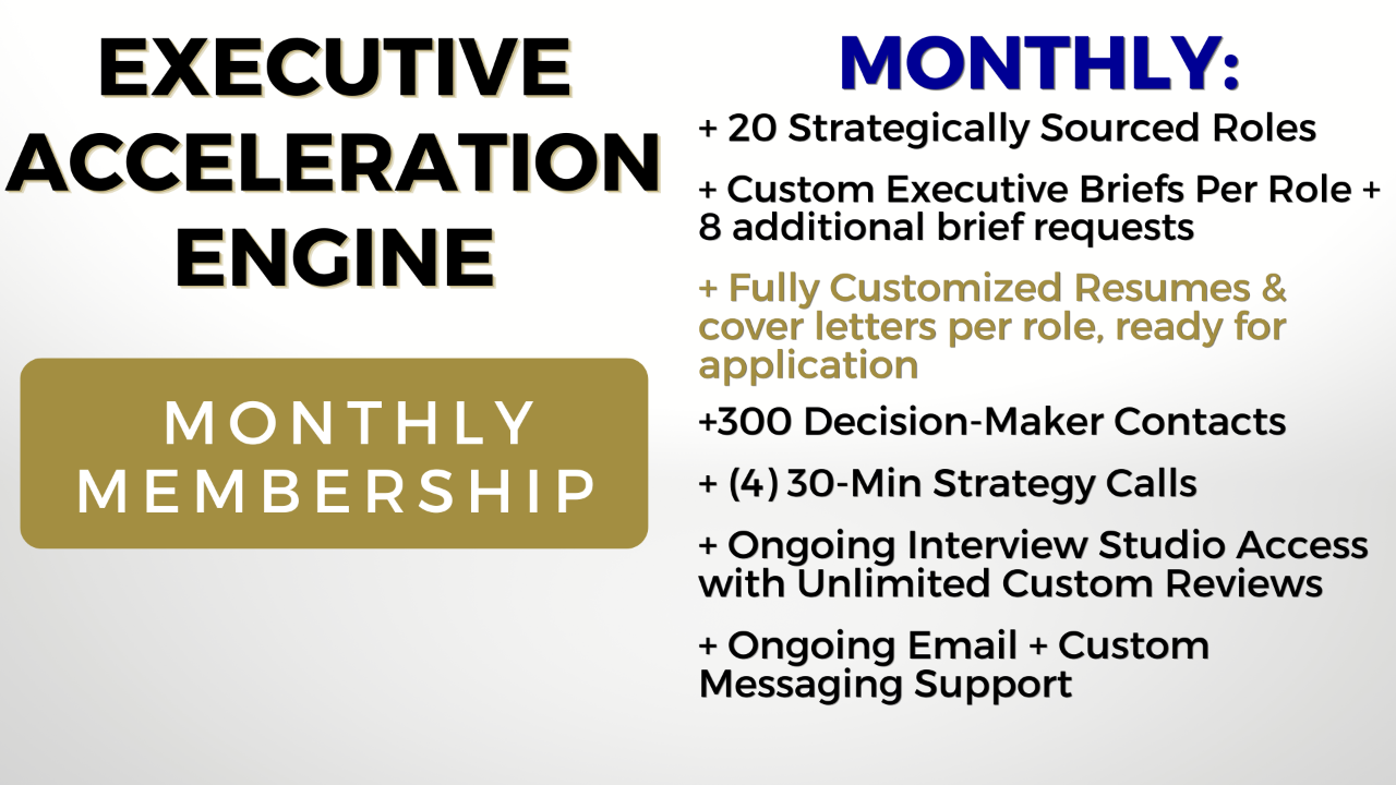 This is where strategy meets execution. Our Monthly Job Search Acceleration Memberships are designed to support you beyond branding, helping you execute your job search with consistency, strategy, and momentum.